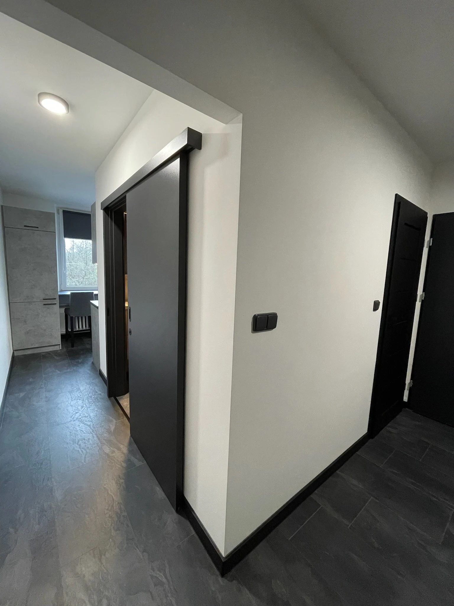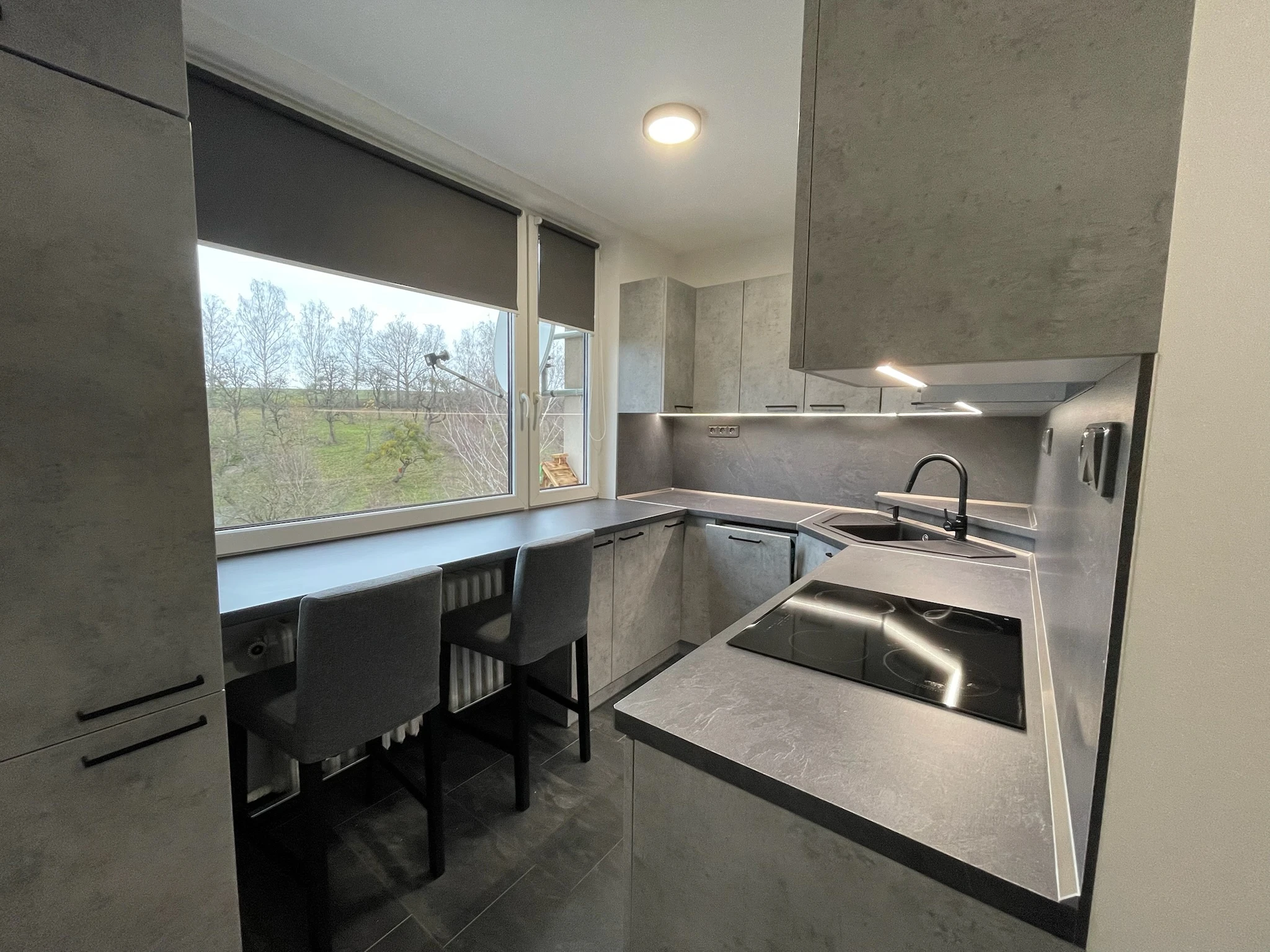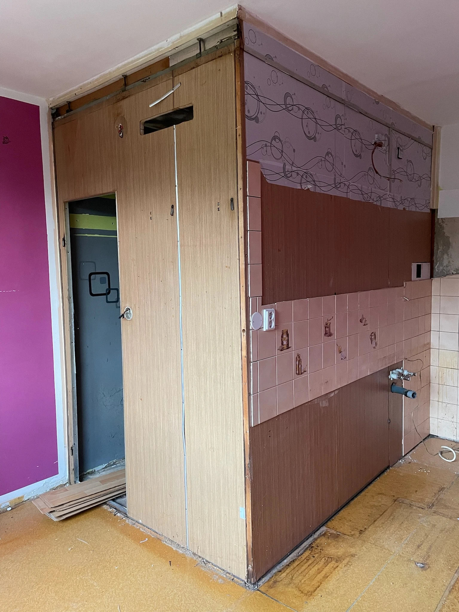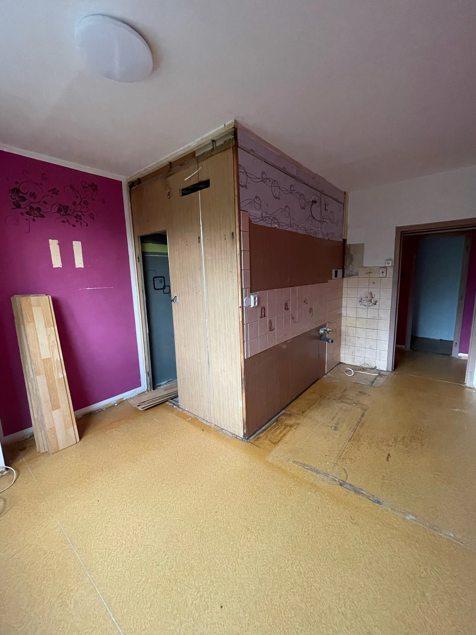 Zde proběhla kompletní rekonstrukce bytu z 80. let, jenž byl v původním stavu. Provedla se demontáž umakartového jádra, vodovodu, kanalizace a elektroinstalace, vybourání panelových příček pro spíže a jiné. Změnou dispozice kuchyně vzniklo více místa pro koupelnu a tím došlo k využití většího množství prostoru k bydlení.
