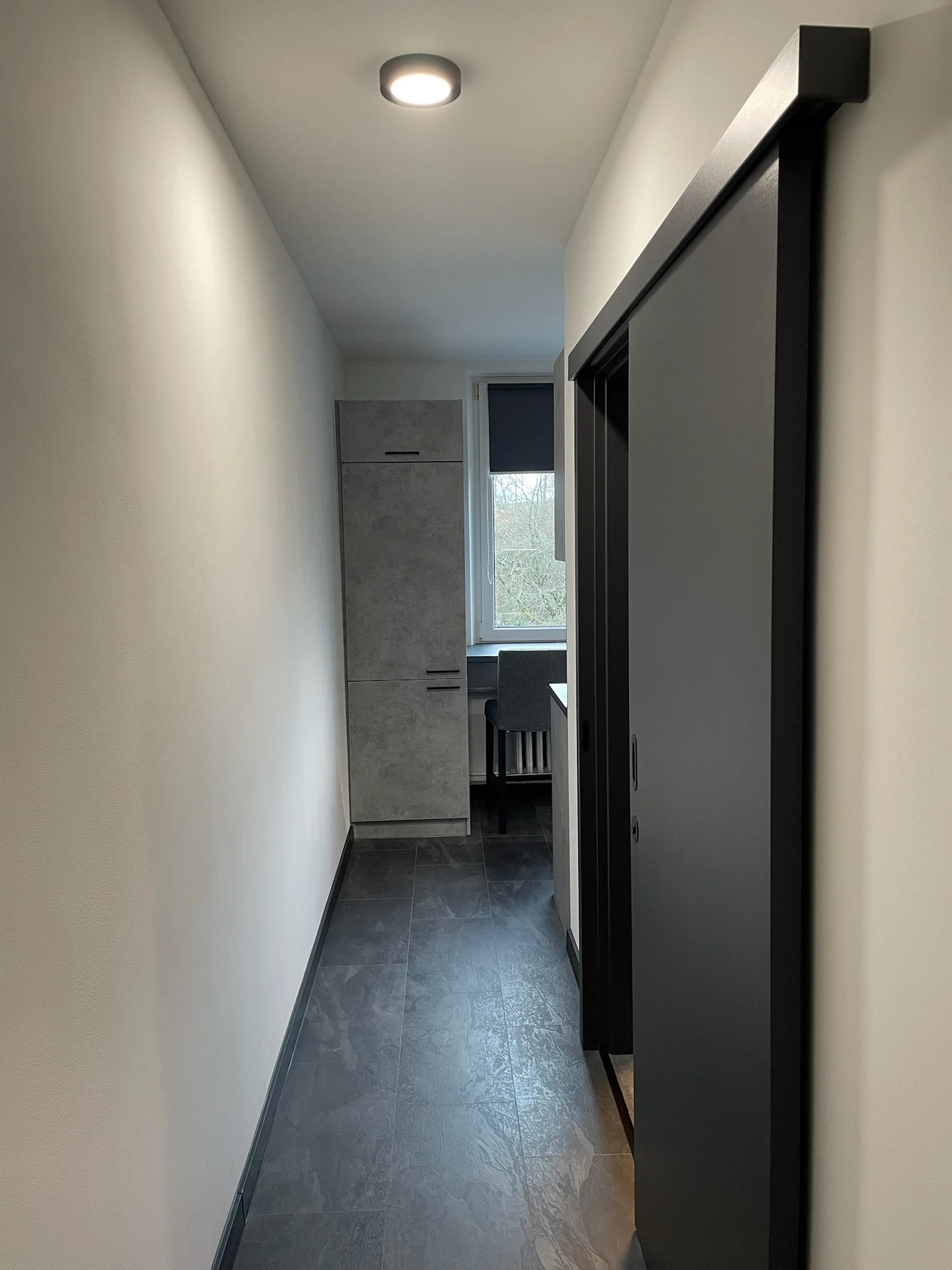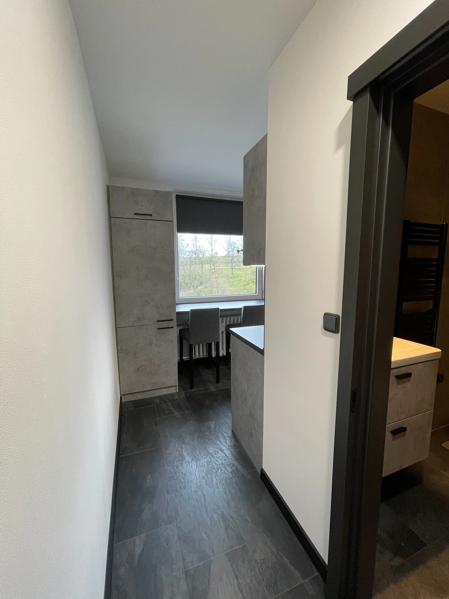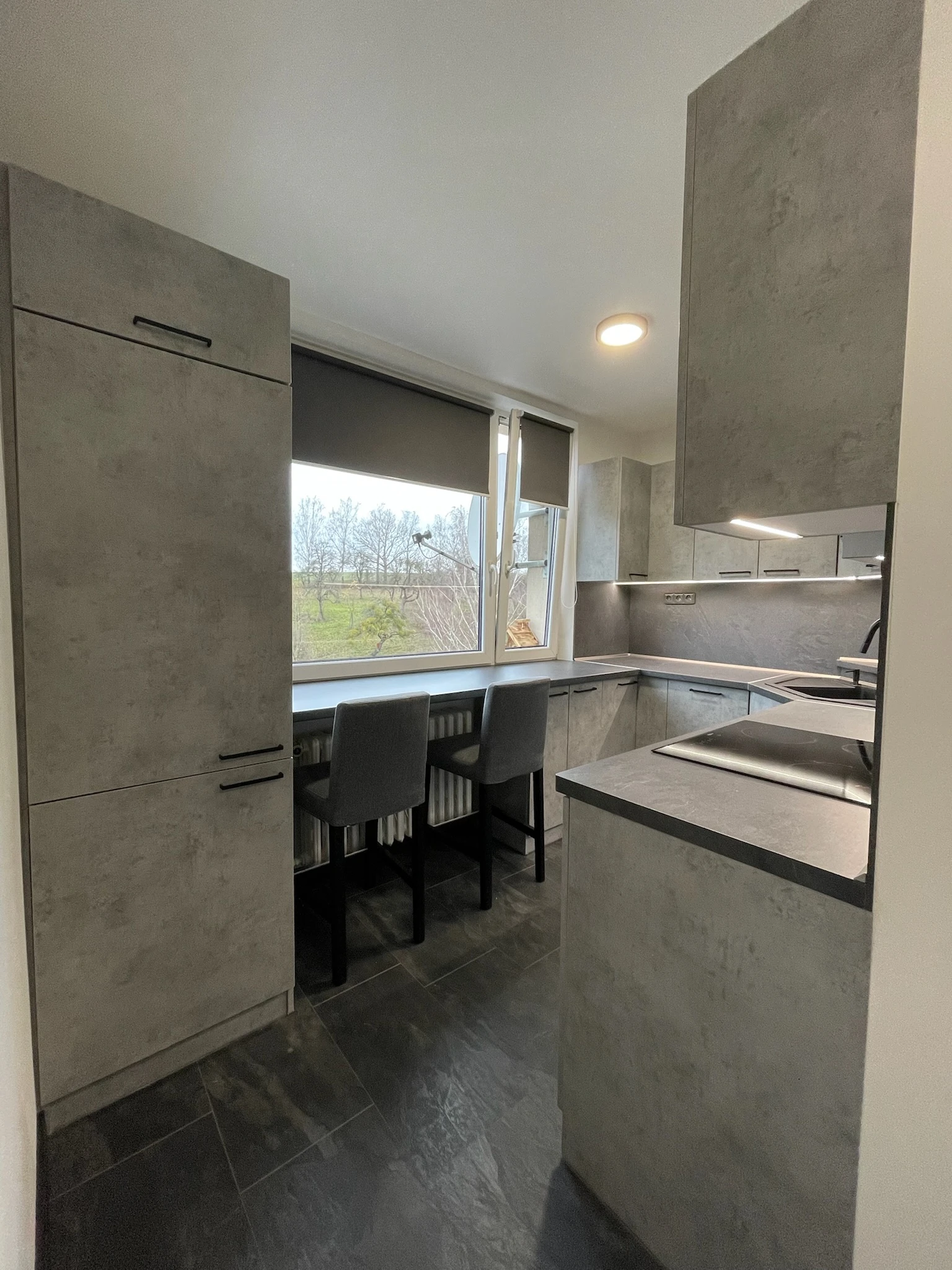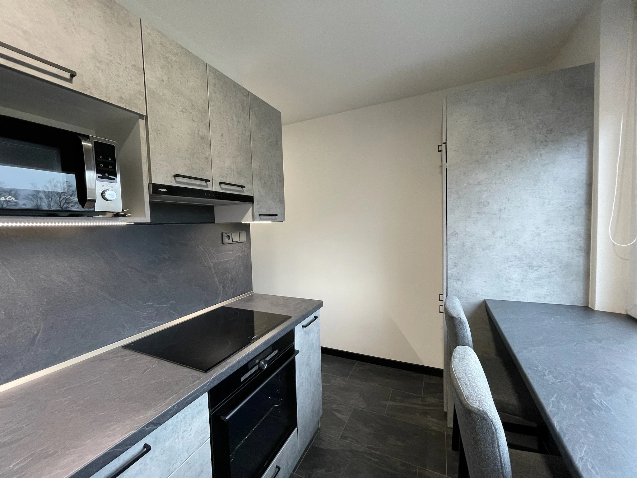 Zde proběhla kompletní rekonstrukce bytu z 80. let, jenž byl v původním stavu. Provedla se demontáž umakartového jádra, vodovodu, kanalizace a elektroinstalace, vybourání panelových příček pro spíže a jiné. Změnou dispozice kuchyně vzniklo více místa pro koupelnu a tím došlo k využití většího množství prostoru k bydlení.