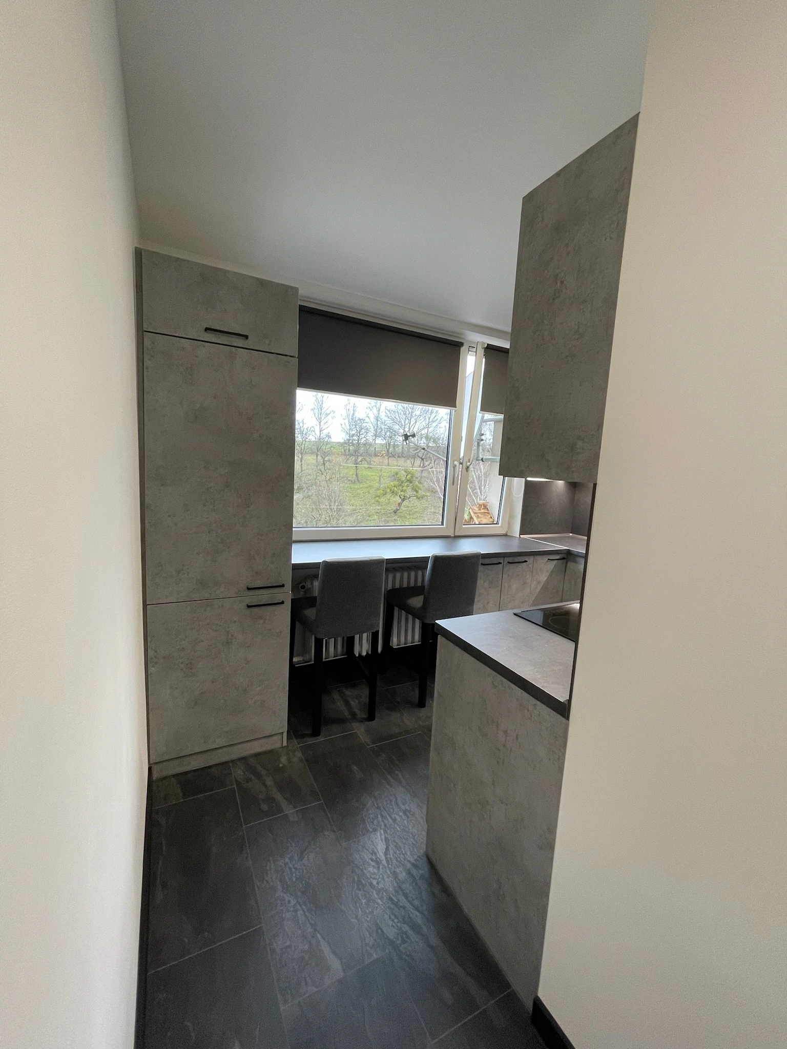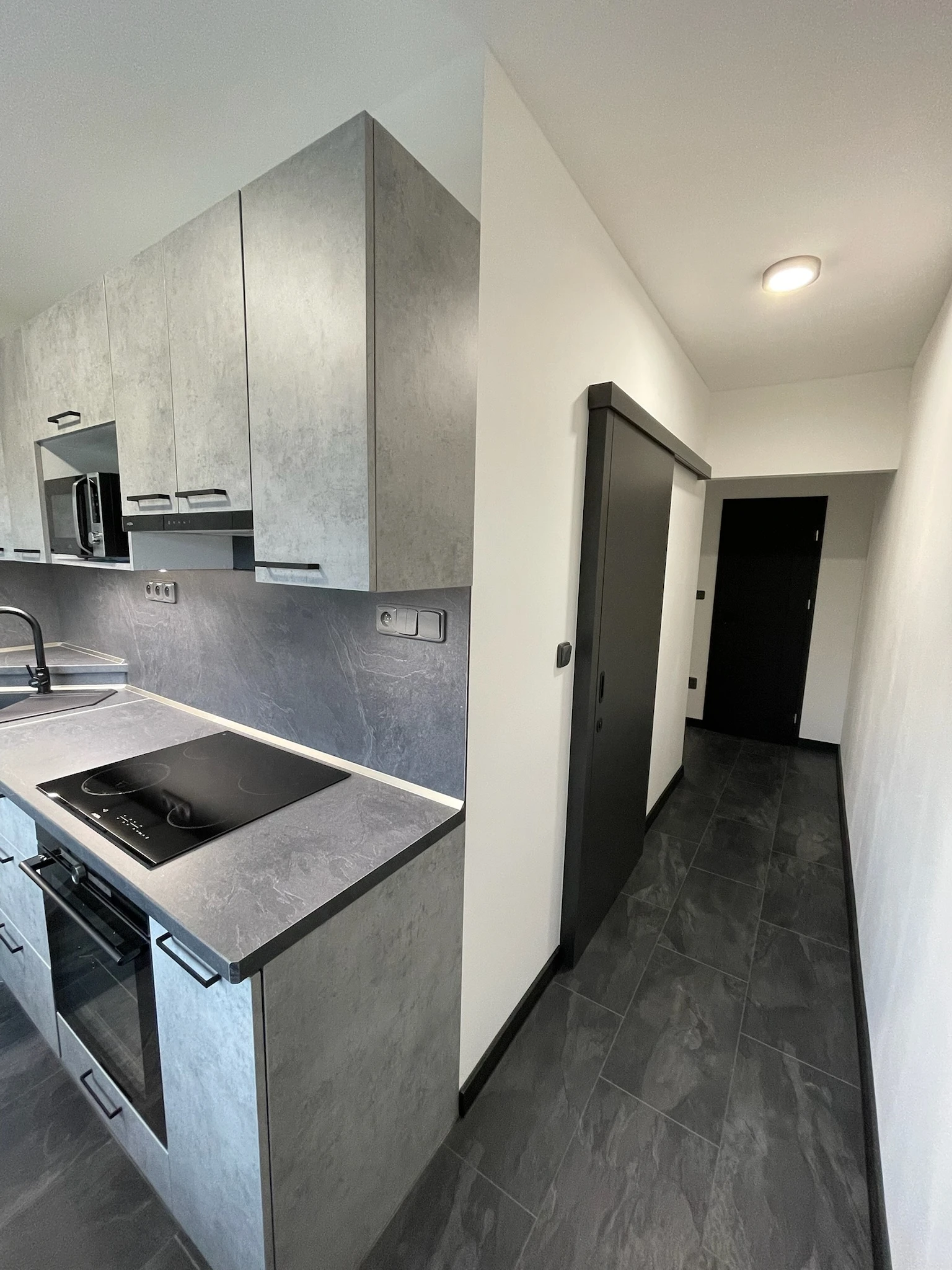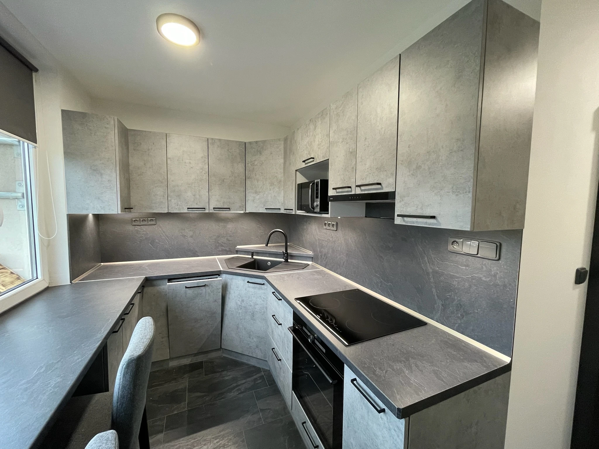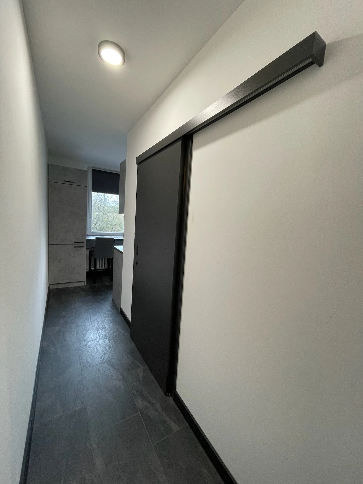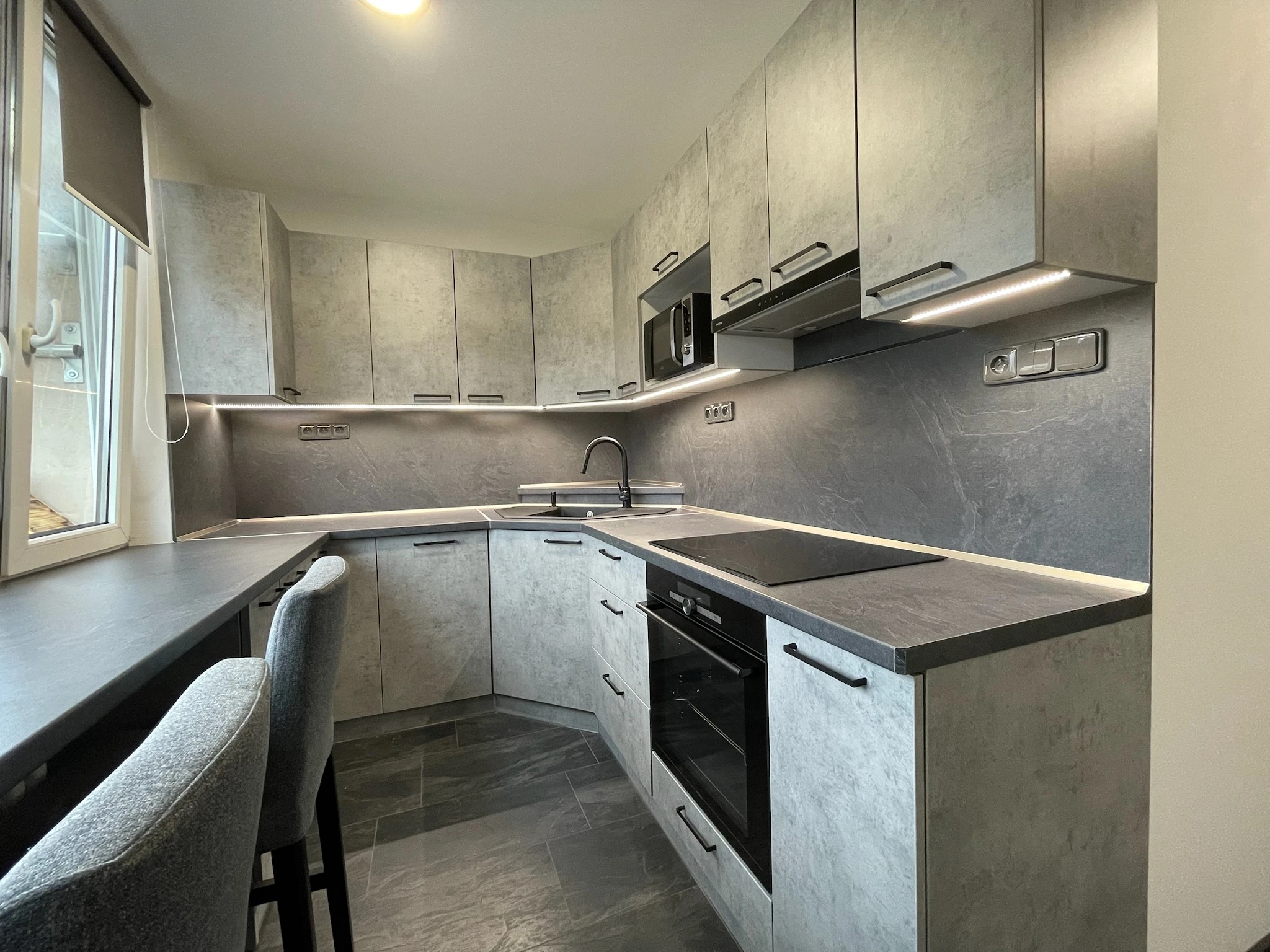 Zde proběhla kompletní rekonstrukce bytu z 80. let, jenž byl v původním stavu. Provedla se demontáž umakartového jádra, vodovodu, kanalizace a elektroinstalace, vybourání panelových příček pro spíže a jiné. Změnou dispozice kuchyně vzniklo více místa pro koupelnu a tím došlo k využití většího množství prostoru k bydlení.