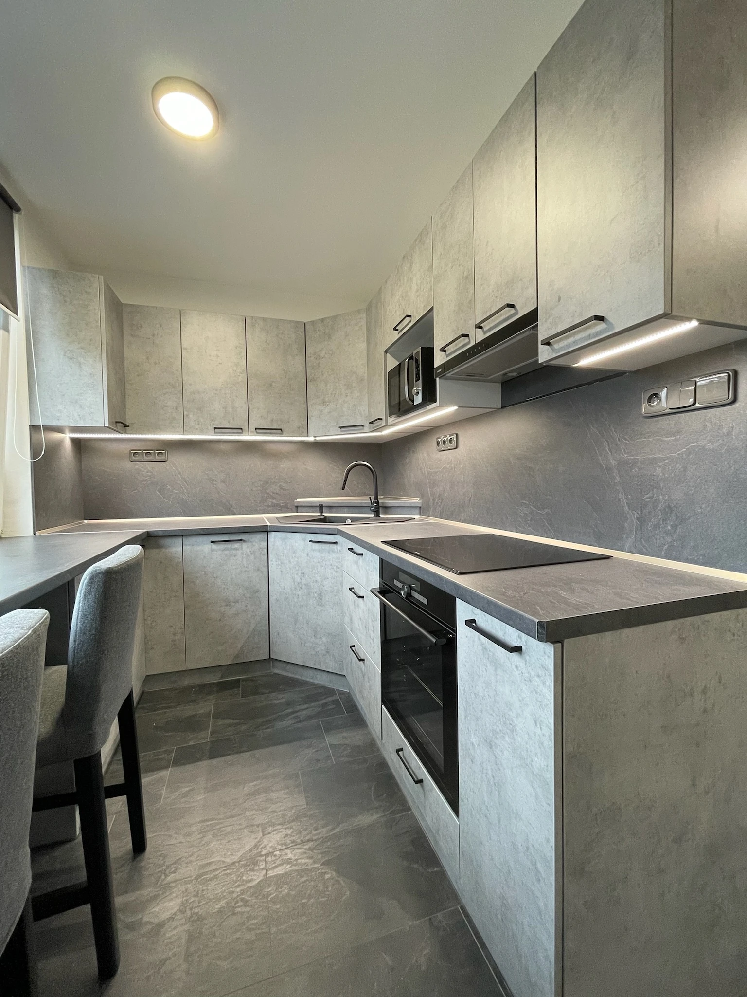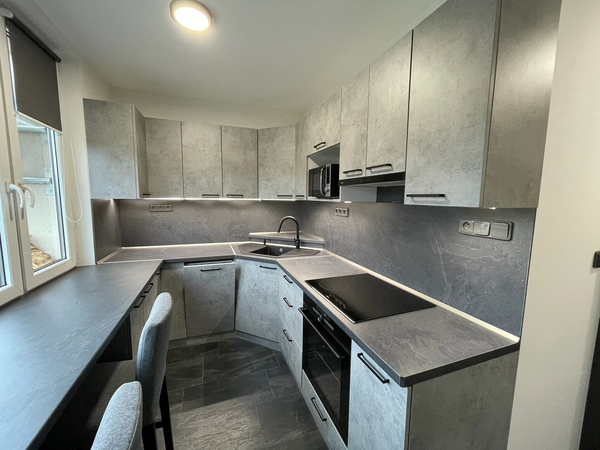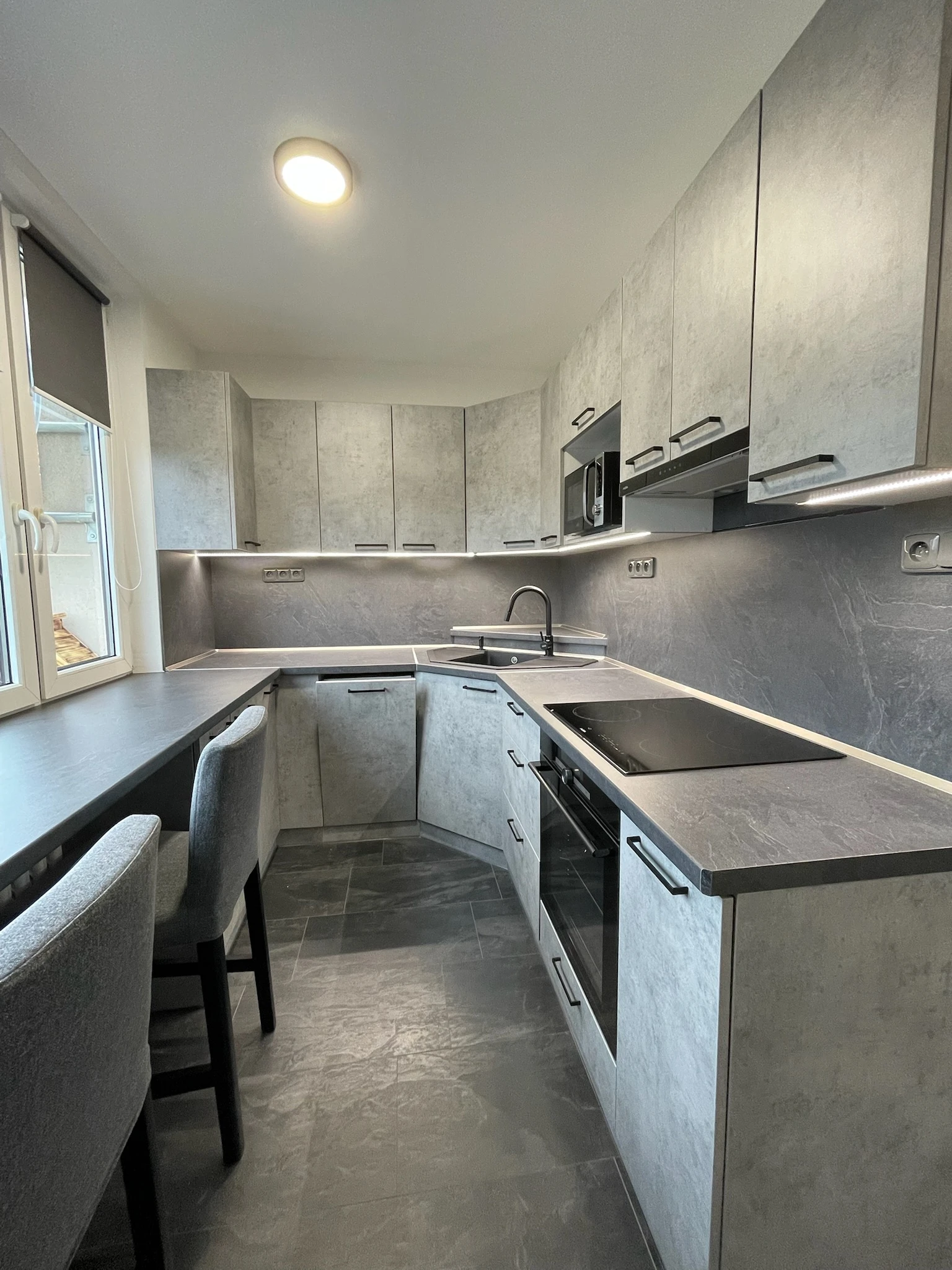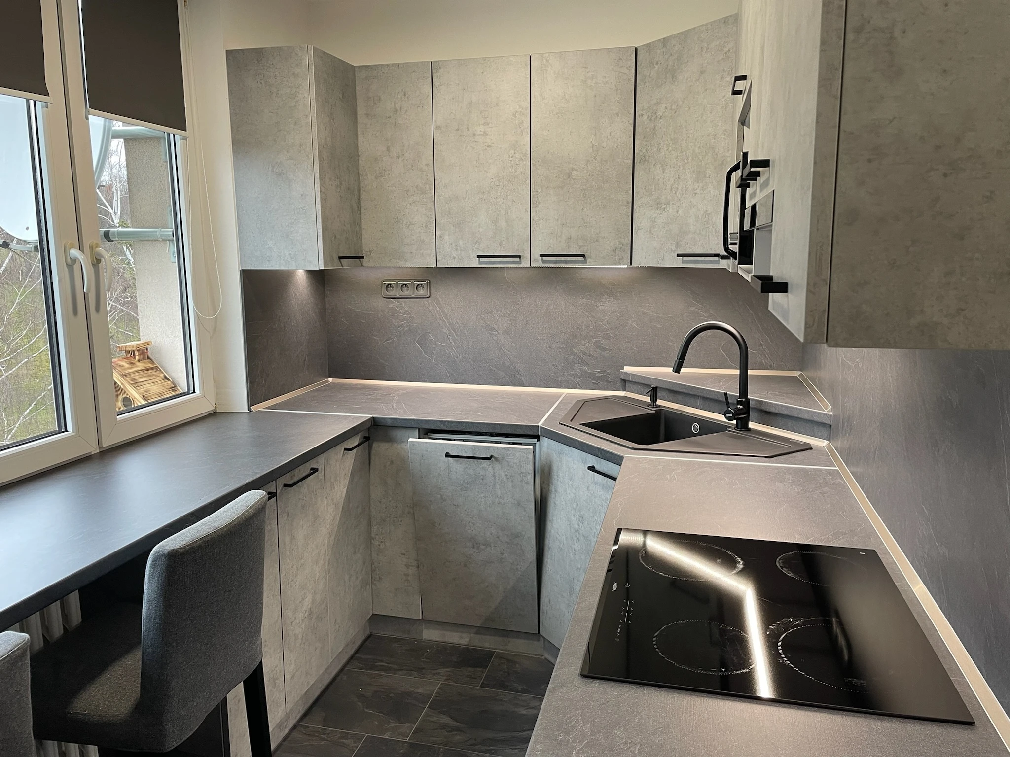 Zde proběhla kompletní rekonstrukce bytu z 80. let, jenž byl v původním stavu. Provedla se demontáž umakartového jádra, vodovodu, kanalizace a elektroinstalace, vybourání panelových příček pro spíže a jiné. Změnou dispozice kuchyně vzniklo více místa pro koupelnu a tím došlo k využití většího množství prostoru k bydlení.