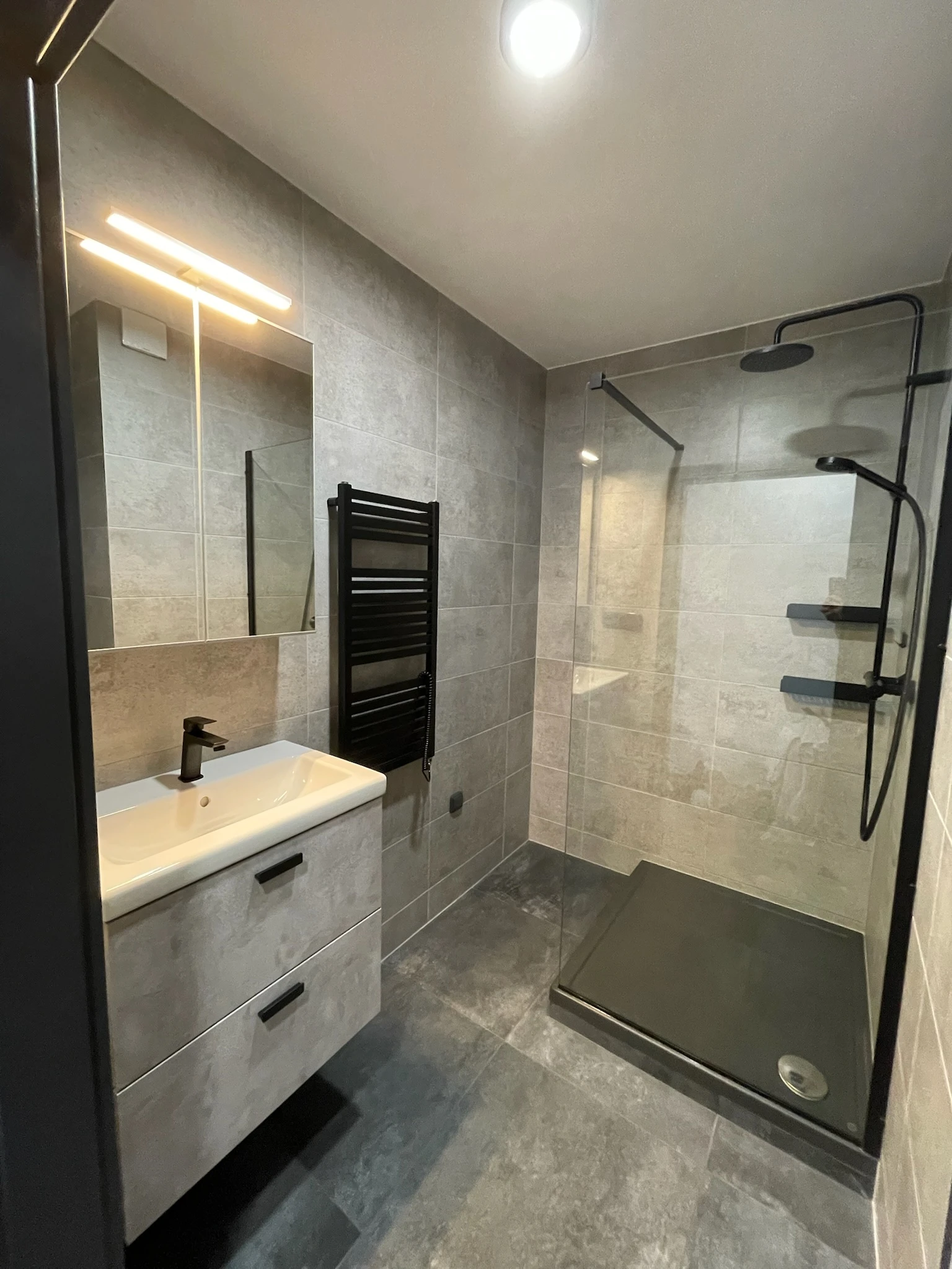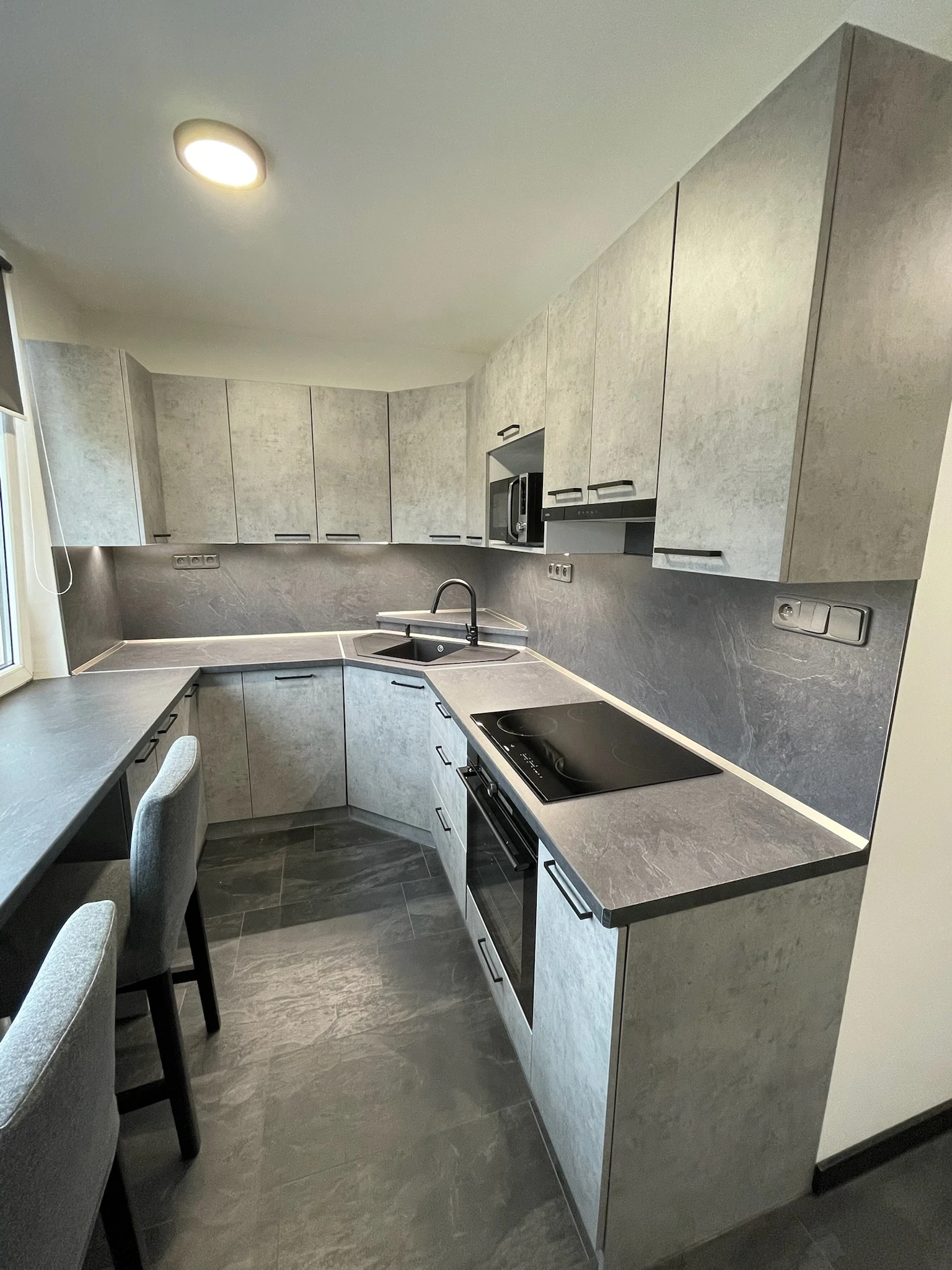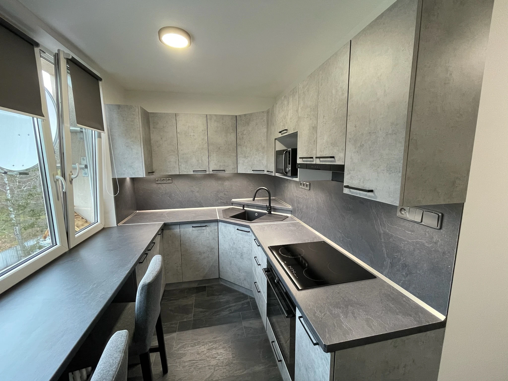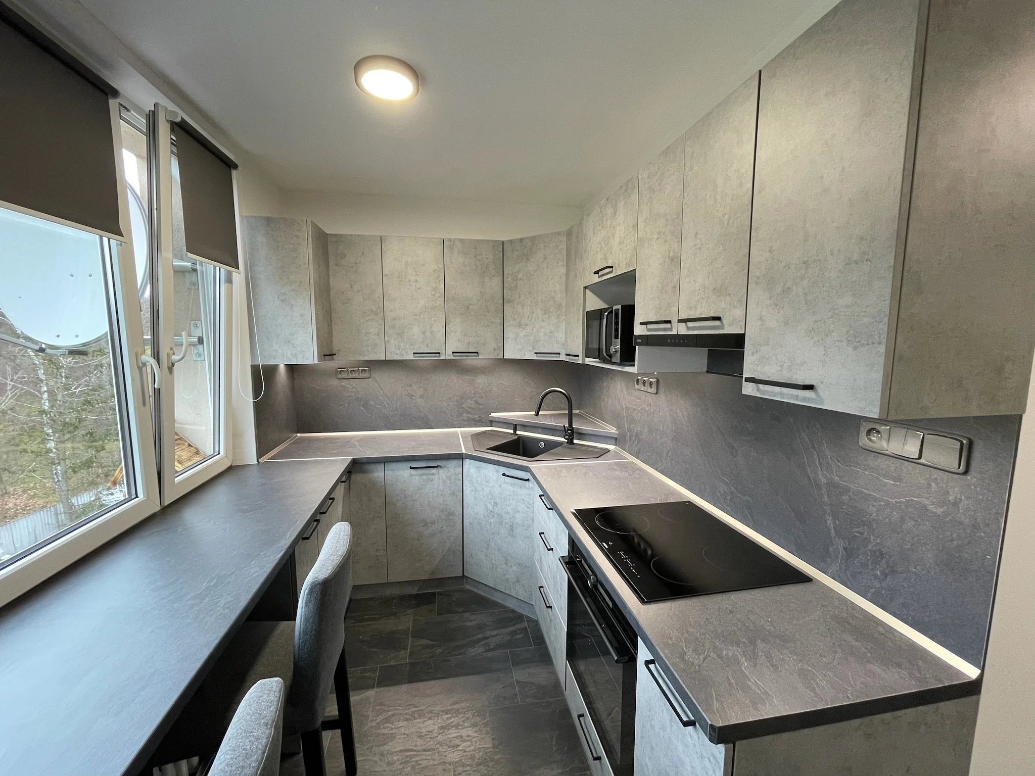 Zde proběhla kompletní rekonstrukce bytu z 80. let, jenž byl v původním stavu. Provedla se demontáž umakartového jádra, vodovodu, kanalizace a elektroinstalace, vybourání panelových příček pro spíže a jiné. Změnou dispozice kuchyně vzniklo více místa pro koupelnu a tím došlo k využití většího množství prostoru k bydlení.